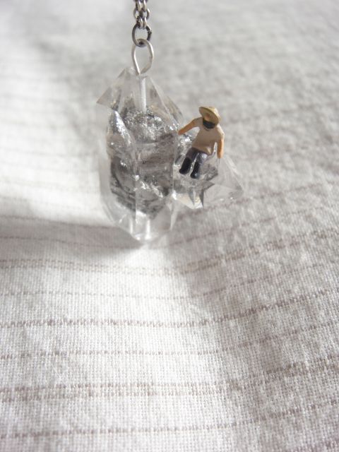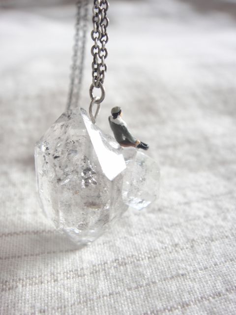 どれも、天然の形をそのまま残した水晶に、ジオラマ用人形をくっつけたもの。