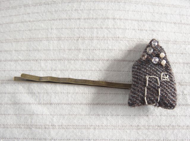 毛100%生地で家を作って、ヘアピンにくっつけてみました。