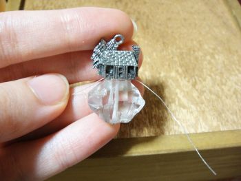 水晶に針金を通して、強力接着剤で止めた大聖堂のまわりにくぐらせて強化しています。