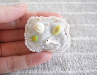 まだ、三つ四つアップしてないブローチがあるのですが、白うさぎも使い切ったことだし、しばらくは打ち止めかな……?