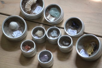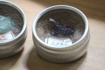 7.鉱物用粘土で鉱物を留め、綿、生き残ったラベルを配置する
