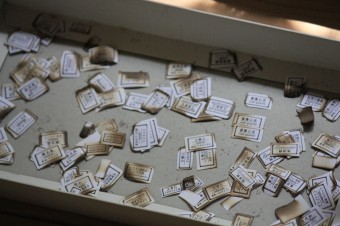 6.標本ラベルをじりじりと蝋燭の火で焼き、半分以上焼失させる