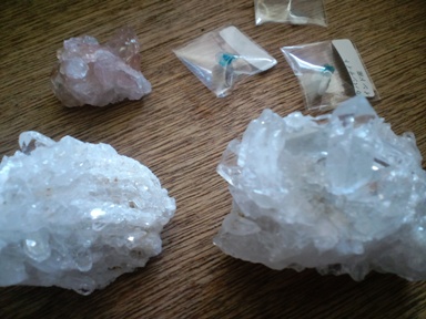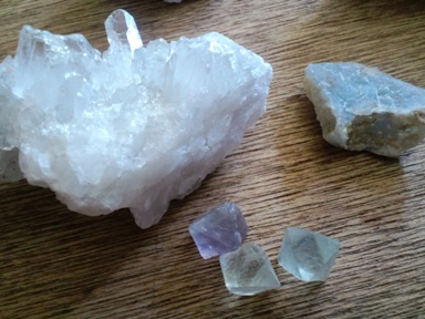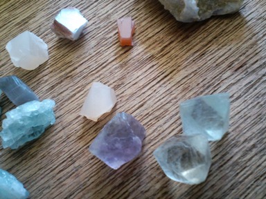ムーンストーンの原石とかアクアマリンとか蛍石とか。