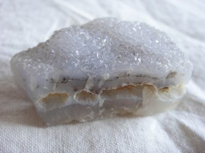 「玉髄」という名前のとおり、結晶系ではなく、溶けた石英が重なり合って層になっているんですが、表面に近いところはきちんと結晶になってます。
