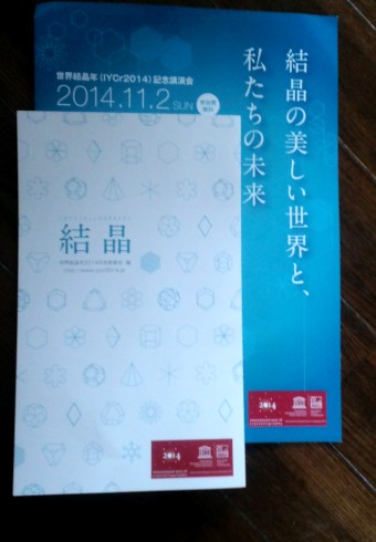 「世界結晶年を締めくくる総括ともいえる講演会」だったそうですが、つまり、知ったときにはすでに締めくくりに入っていたという……いろいろ手遅れ感でしたが、講演自体はすごく面白かったです。