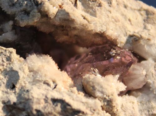 火成岩の間に成長したアメジスト