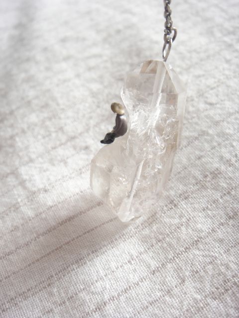 どれも、天然の形をそのまま残した水晶に、ジオラマ用人形をくっつけたもの。